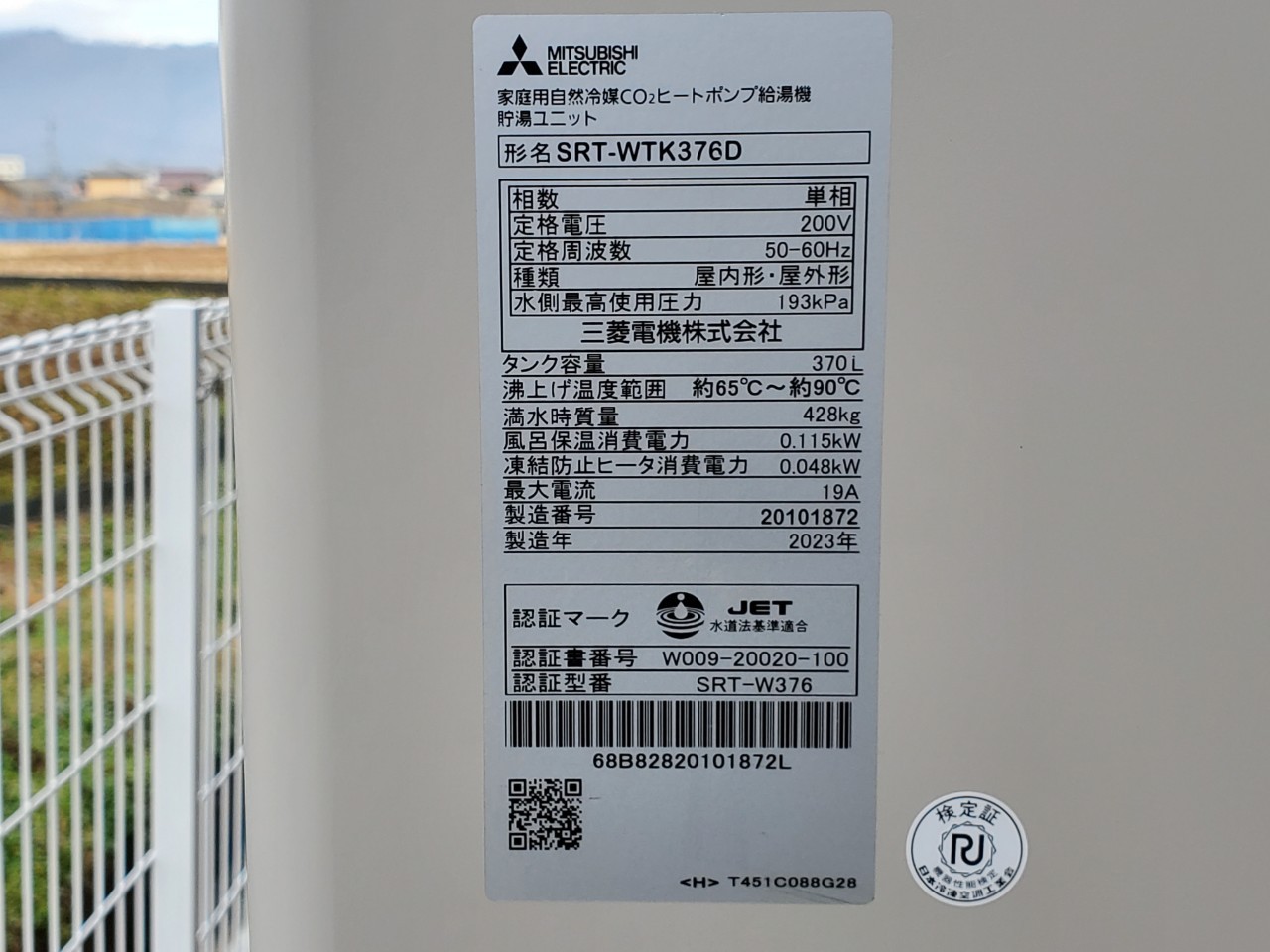 伊那市 三菱電機家庭用自然冷媒CO2ヒートポンプ給湯機貯湯ユニットSRT-WTK376D エコキュート交換工事