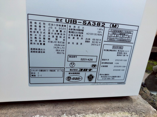 佐久市岩村田 タカラスタンダード給湯器→コロナ石油小形給湯機UIB-SA382(M) 給湯器交換工事