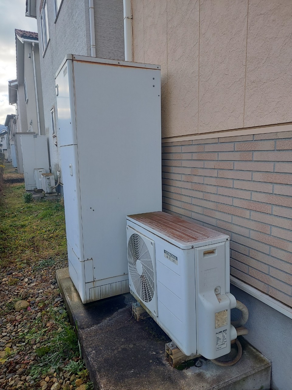 安曇野市 コロナエコキュートCHP-459K→コロナ自然冷媒CO2家庭用ヒートポンプ給湯機ヒートポンプユニットCHP-Y454K エコキュート交換工事
