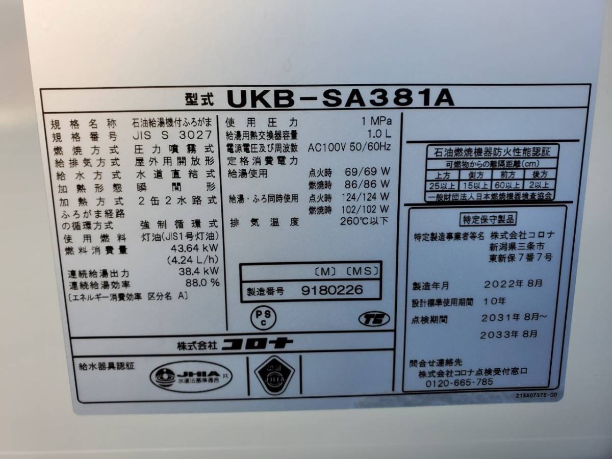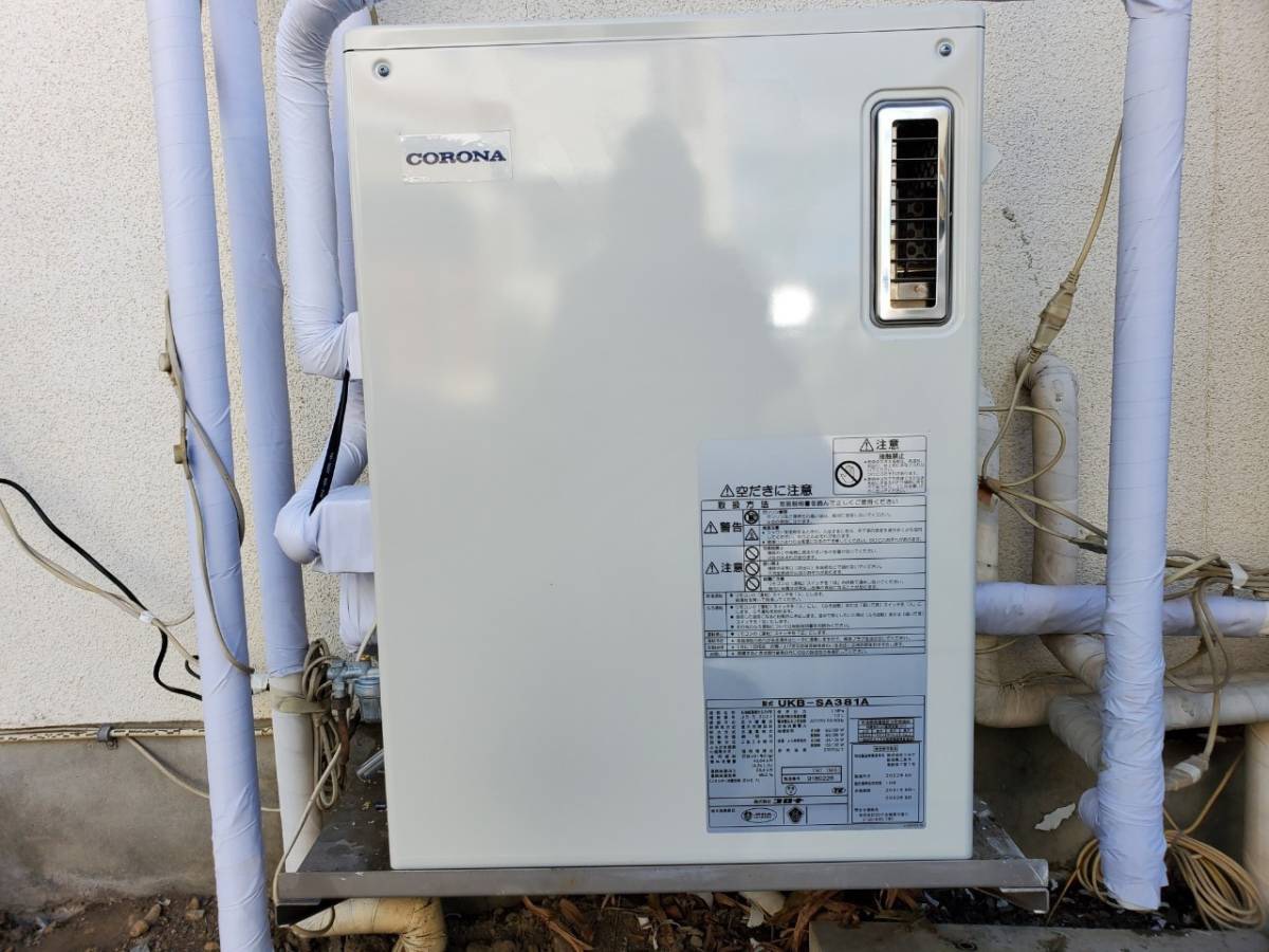 岡谷市 コロナ石油給湯機付ふろがまUKB-SA381A 給湯器交換工事