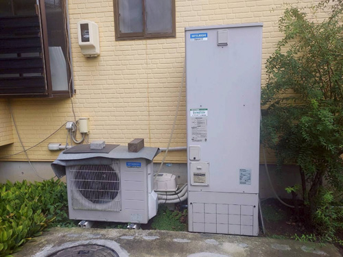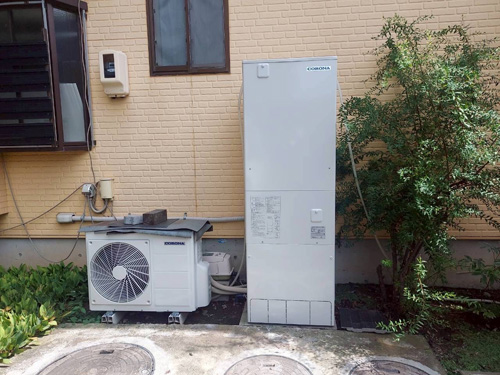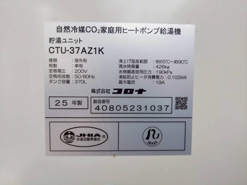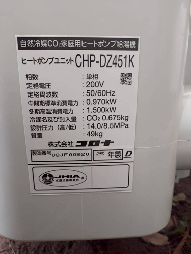 飯田市上郷黒田 三菱電機自然冷媒CO2ヒートポンプ給湯機 貯湯タンクユニットSRT-HPTK37W5→コロナ自然冷媒CO2家庭用ヒートポンプ給湯機ヒートポンプユニットCHP-DZ451K、貯湯ユニットCTU-37AZ1K エコキュート交換工事 施工前 施工後