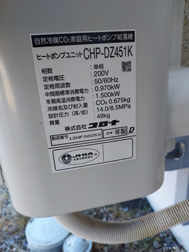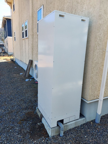 飯田市 パナソニックヒートポンプ給湯機 ヒートポンプユニットHE-PF45B→コロナ自然冷媒CO2家庭用ヒートポンプ給湯機 ヒートポンプユニットCHP-DZ451K エコキュート交換工事 施工前 施工後